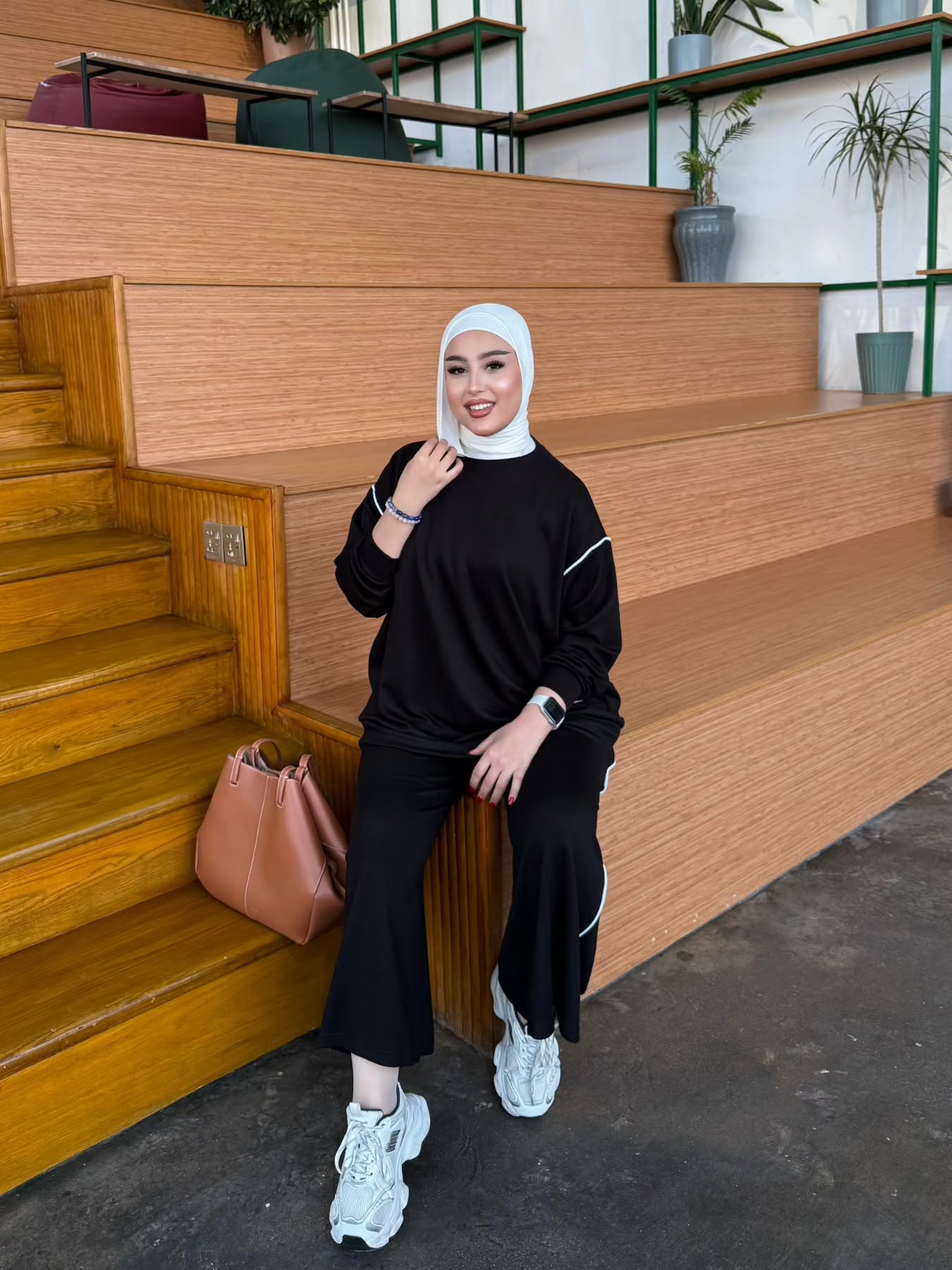 - Design Élégant : Haut à manches longue et pantalon ample pour une silhouette chic et décontractée.